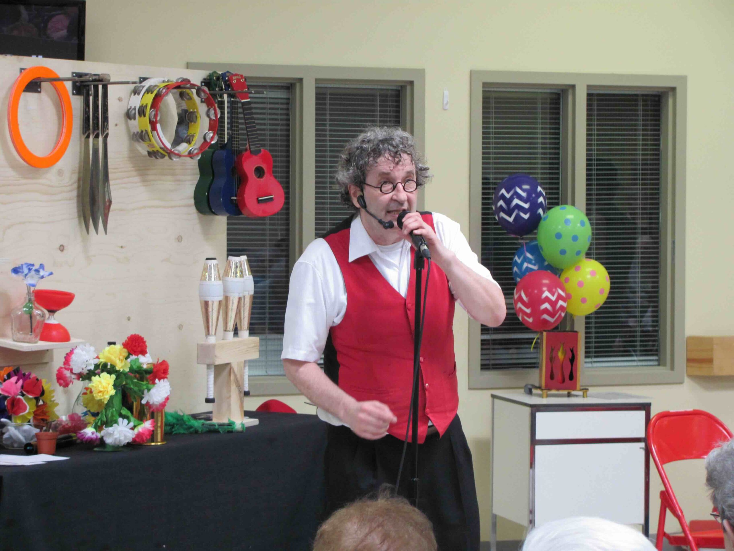 Monsieur Ben offre un spectacle spécialement adapté aux aînés, alliant magie surprenante, jonglerie dynamique et une bonne dose de comédie.